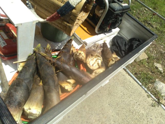 草刈りと、タケノコ掘りで夕方になって腰が張ってきた。あんまり頑張るのはよそう、とは思う。