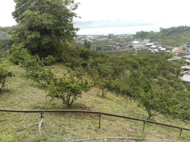午後はたっぷり昼寝したあと、和田地区に先日植えた南柑20号の様子見を兼ねて苗木の花ちぎり作業。ここに植えたのは3年生の苗木で、ミカンの花の白い蕾がついている木が多い。今年は実を成らすつもりはないので蕾はちぎってしまう。実を成らすのにもエネルギーが必要で、ちぎることでその分葉っぱや枝の成長に回ることになる。この前20本ほど植えた苗木だが、4本ほど葉っぱが落ちて枯れそうになっていた。可哀そうだが掘り出して、新しい苗木と交代してもらった。絶対枯れない植え方をしたはずだが、掘り出す時に根がやられてしまっていた木は水がまわらずに枯れたようだ。ちょっと切ない。
