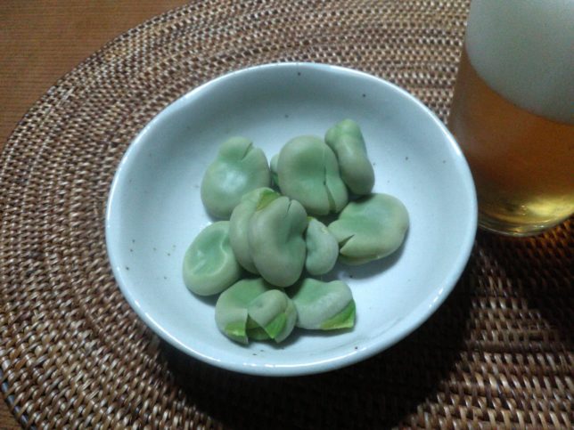 今日のビールのあては菜園で採れたソラマメ。おいしい。ソラマメやアスパラ、枝豆もそうだが、収穫してすぐの野菜はおいしい。よくタレントが採りたての野菜のおいしさを甘いと表現するが、確かに甘くて、他の表現が思いつかない。