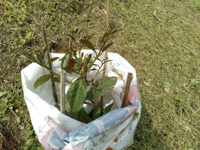 今日から5月。世の中はゴールデンウイーク。休もうかなとも思ったが、草刈りに行くことにした。草刈りはまあまあ楽しい。刈ったあと、成果がすぐ目で見える。今日はシオカラ地区の大津4号園地の草刈りをした。ここはレモンの苗木を3月20日ごろ20本植えたところ。苗木を植えるまえにざっと草刈りしたのだが、ノゲシが腰丈くらい伸びてきている。コセンダングサ(くっつき虫)も育ってきていた。2時間ほどかかって終了。レモンの苗木がすごく元気がいい。どんどん芽がのびてきて、肥料袋からはみだしてきている。しかも植えた苗木はみんなおんなじように育っている。レモンが強いのか、苗木がいい苗木だったのか。