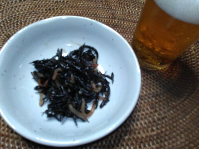 今日のビールのあてはひじきの煮物。