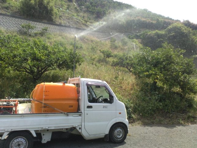 今日もいい天気だ。朝から黒点病の農薬散布の開始。まずは家の裏の和田地区から。午前中いっぱいかかって終了。午後からはシオカラ地区の農薬散布。