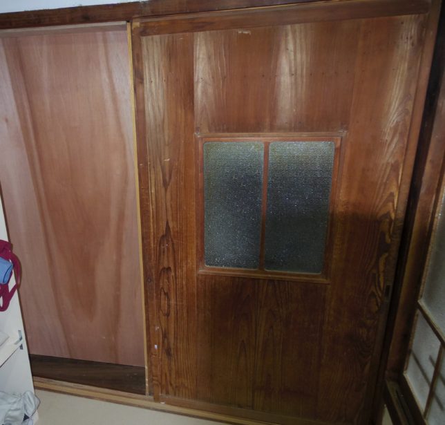多少のスペースができた。掃除道具ぐらいはおけそう。このままではたいしたメリットはないのだが、次の段階は右側の引き戸をやめて、少し小ぶりなドアにする予定。しかし、写真で見ても昔ながらの引き戸はいい味だしている。なんとか生かしていきたい。