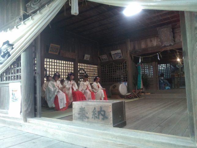 11時からは神事。オヤジは外で見学。一か月間週2回練習を重ねてきた浦安の舞もうまくいったようだ。神事終了後解散。片づけは明日だ。