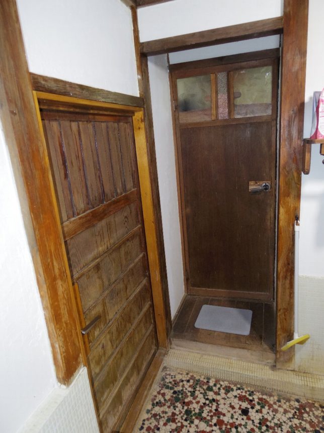 今日も寒かった。天気予報では雪だったが、ほとんど降らなかったが、寒くて風が強かった。たまに日も差していたのだが寒くて外で活動する気にはなれなかった。今日は風呂場の出入り口の改修作業。なんとか終了。扉の調整はミリ単位の仕事なので、オヤジには苦手分野だが何回もやってきてるのでだいぶ慣れた。これでだいぶ隙間風が防げると思う。写真を撮っておいたのがこちら。左側は外に出る扉で、右側は脱衣場への扉。