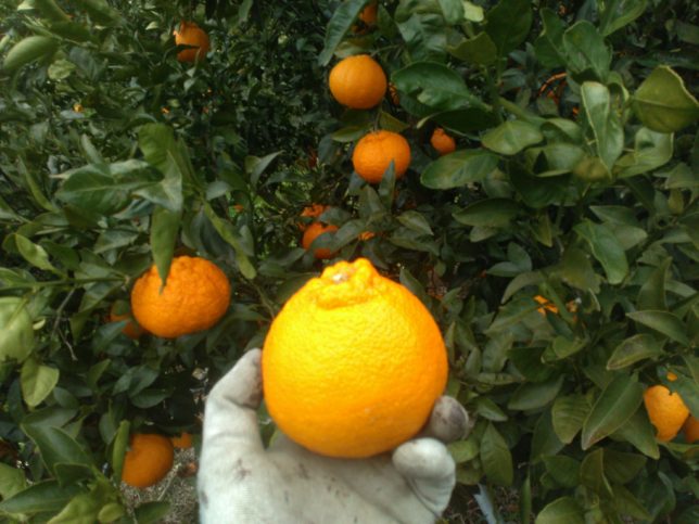 デコポンを収穫するのに朝から防腐剤を散布した。撒いた農薬はベンレート、ベフランとアビオンE。農協とのお約束でもあるが、デコポンはこれから3月まで貯蔵するのでできれば腐ってほしくない。午後は奥方と伊予柑の収穫を片づけた後、和田の奥からデコポンの収穫開始だ。コンテナ10杯ほど収穫して終了。農協からのFAXで来週寒波が来るとのこと。マイナス3度の予報もあるようで収穫できるものは早く収穫しなさいとのこと。ちょっと焦る。甘平も寒波が来る前に採ろうと思う。こちらがデコポン。美味しい時のデコポンは本当に美味しい。紅マドンナや甘平に劣ら無いと思う。今年はまずまずかな。