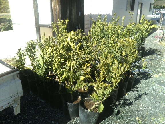 昼いちばんは玉津柑橘倶楽部に頼んでいたポット苗を引き取った。ポット苗は玉津柑橘倶楽部の連中が1年間育てたみかん苗だ。会員に1本900円で売ってくれる。南柑20号と宮川早生を30本づつ購入。今月中に園地に植えるつもりだ。なんだかんだ忙しい。