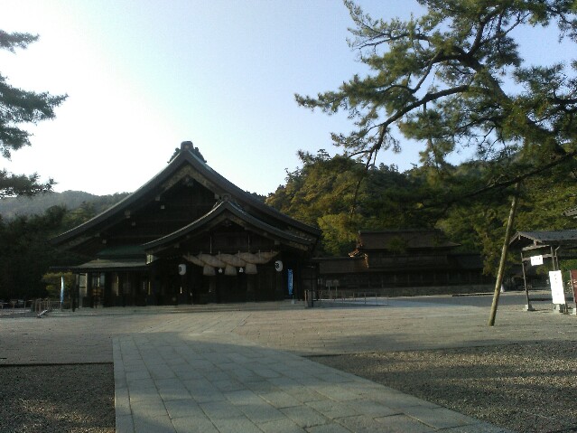 その後は出雲大社へ。夕方5時ごろ到着。まずは参拝。ここは初めて。立派だ。明治神宮、靖国神社、伊勢神宮と比べても趣が一味違う。