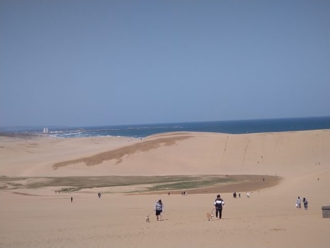 朝食後にチェックアウトして、鳥取砂丘へ。日頃の行いがいいのか、快晴だ。30分ほどかけて砂丘を散歩。坂を上るのはしんどいが、多少の達成感はある。
