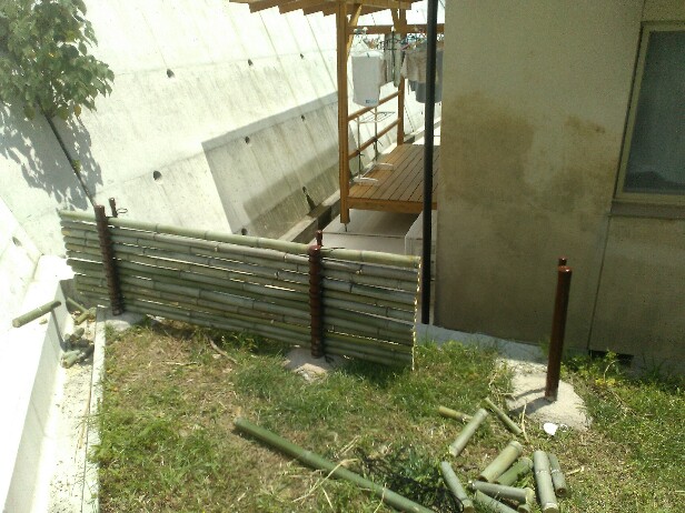 朝一番は行司が谷の紅まどんな園地の草刈りの続きだ。10時過ぎに終了。その後はDIYで隣家との境の竹垣の作成の続き。一部できたのが、こんな感じ。