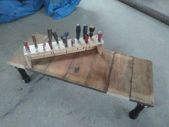 上に乗っているのは同時に作ったドライバー置き場。ドライバーがいつの間にか増えてきたので作ってみた。どちらもこれから塗装だ。塗装はいつものWATCOオイルだ。