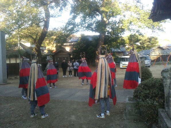 その後8時から神事。神主やオヤジの祝詞奏上や榊奉納があった後浦安の舞だ。これがデビューの二人もいる。無事踊り切った。