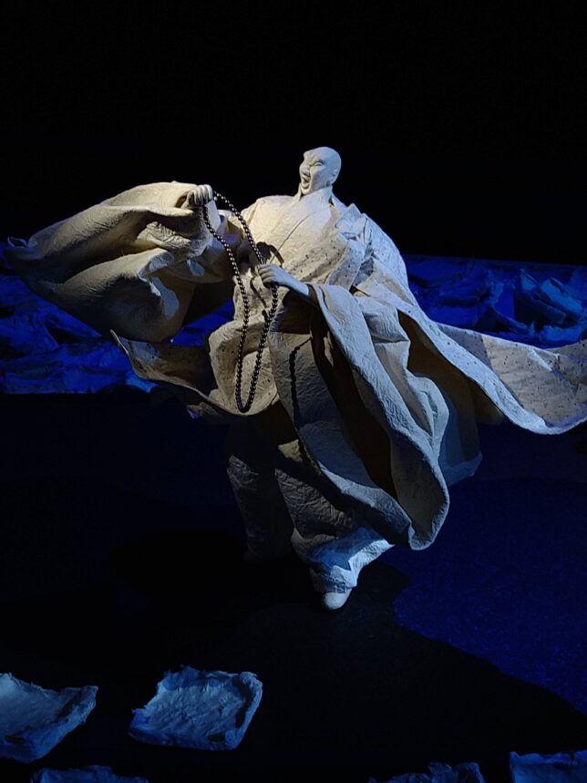 帰りに愛媛県歴史博物館に寄った。明石寺からは500mぐらいかな。宇和高校の隣にある。オヤジは久しぶり。奥方は初めて。常設は愛媛県の歴史が古代から最近まで。入ってすぐのところに空海の一生を和紙彫塑の人形群で表現した内海清美氏の展示があった。6年前ぐらいからやっているらしい。