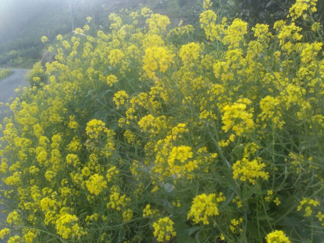 久しぶりに写真を。この時期みかん山は菜の花だらけになる。黄色い花と一緒にもう種をいっぱい含んださやができている。