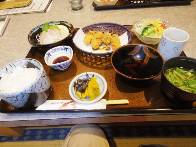 そのあとは昼飯を食べに愛南町の”なにわ”へ。途中の内海村を通るたびにいつも夏井いつきさんを思い出す。このあたりが生まれ故郷のはず。この辺から宇和島東高に通っていたのかななど。お昼はお目当ての愛南町の牡蠣を使ったカキフライ定食。お刺身がついている。ポン酢で食べるカキフライも美味しかったがお刺身が美味しい。南予でお刺身が美味しいのは当たり前だが、殊更美味しいのはよっぽどだ。