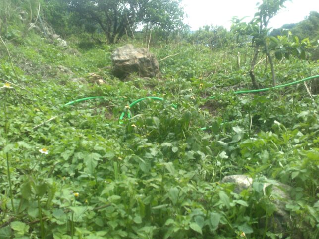 午後は除草剤の散布作業。枯れ木の除去を終わった宮ノ谷地区に除草剤を撒いた。ここは前回4月2日に除草剤を撒いている。雑草はまだ大きくはなっていないのだが、コセンダングサが繁茂している。花も咲いているのもあって、このまま放っておくとくっつき虫が大量生産されそうなので早めに除草剤を撒くことにした。これで全滅する作戦。結果はどうなるかな。
