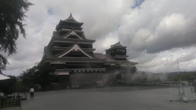 今日は研修旅行の二日目。熊本グリーンホテルで起床。天気は曇り。体調はアルコールが残っていて、寝不足感もある。朝食の後は熊本城の見学。11時ごろまでたっぷり時間をかけた。お昼は熊本城内のお店で。