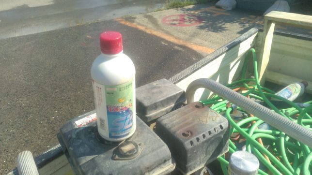 午後はたっぷり休んだ後、オヤジは紅まどんなと新田地区の天牛(ゴマダラカミキリムシ)の防除作業を開始。ゴマダラカミキリムシはこの時期に柑橘の根元に産えつけた卵がかえる頃だ。この時期に殺虫剤(モスピラン)の少し濃いのを木の根元に散布して幼虫を殺してしまうのが一つの防除法になっている。今日から和霊様のお祭り。これがだいたい目安になっている。