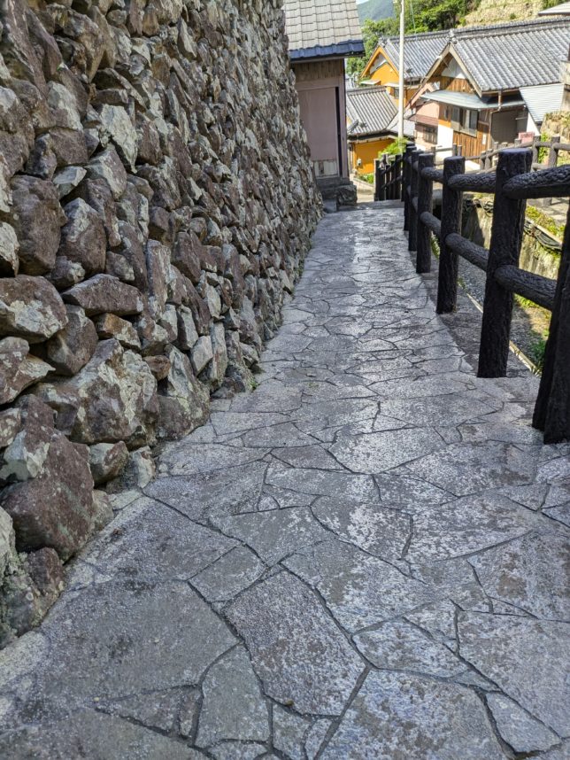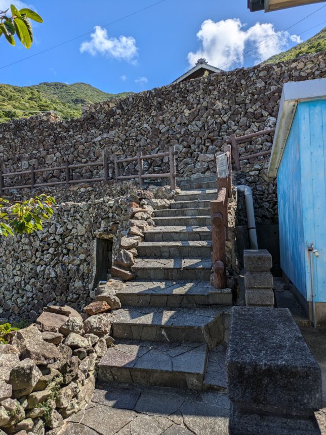その後は船越半島を一周。まずは外泊りへ。ここは石垣の里。今年の4月の地震で震度6弱で崩れたのがテレビで報道されていた。今日の段階では補修は完璧に終わったようだ。地震の時のブログでも触れたが、ここは斉藤耕一監督の映画「旅の重さ」の舞台になったところ。主演は高橋洋子。四国を放浪した後、ここの漁師(高橋悦史)と結ばれる。小説の好きな村娘で出演するのが秋吉久美子。高橋洋子も秋吉久美子もこの映画がデビュー作だ。秋吉久美子は外泊り港に身投げしてしまう役だった。