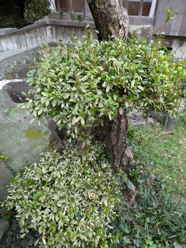 午前中は曇り。少し涼しいんだけど、蒸し暑い。朝から庭木の消毒を開始。先日庭木の剪定をしたのだが、元気がない木が多い。たとえばこれ。ツツジだが葉が白くなっている。