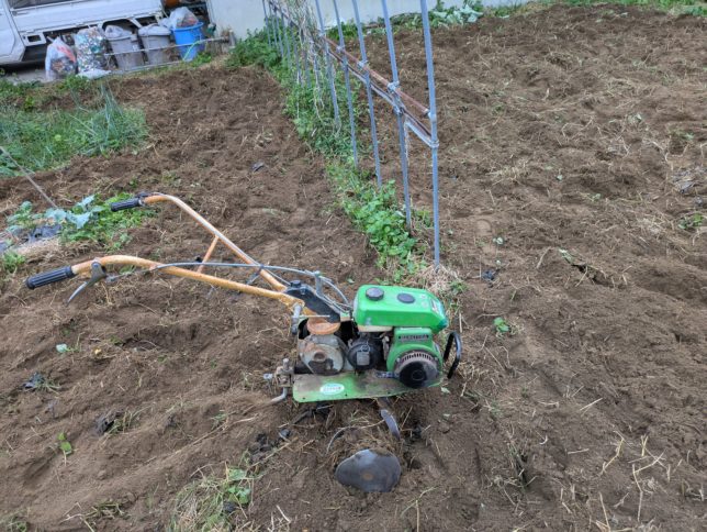 その後は菜園を耕運機で耕した。畑仕事も色々大変。耕運機はマメトラというやつ。30年ものかな。先日オーバーホールしてもらって調子がいい。