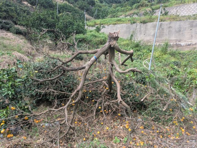 帰ってからは行司が谷と和田地区の枯れ木の伐採作業。行司が谷では大きな木が根元をやられてひっくり返っていた。かなり古い木だもう寿命でもある。