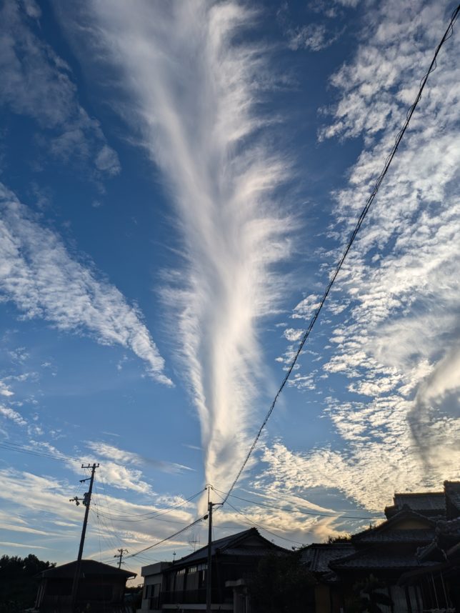 夕方、変な雲が出ていた。気まぐれマスターのブログにもおんなじような雲が。なんだろね。