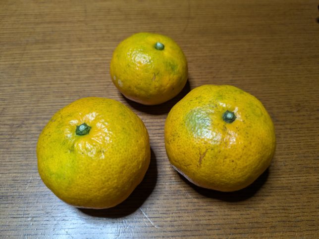今日のパトロールで採ってきた南柑20号。これでも色づきがいい方だ。
