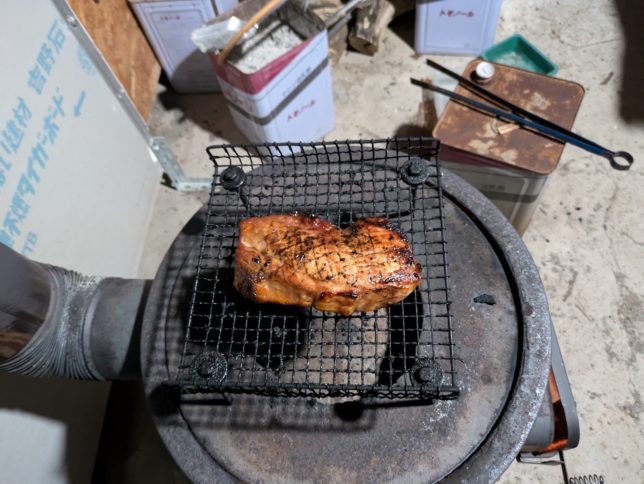 そのあと火が落ち着いたところで焼いた豚もものチャーシューはいい出来だった。