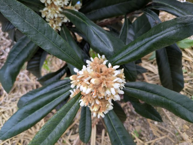 家の前のデコポン園地に一本だけ枇杷を植えている。種から育ったのを植えて4年目ぐらいかな。今年は花が咲いた。ということは実もつくのかな。実がついたら摘果してカバーをかぶせて大事に育てよう。