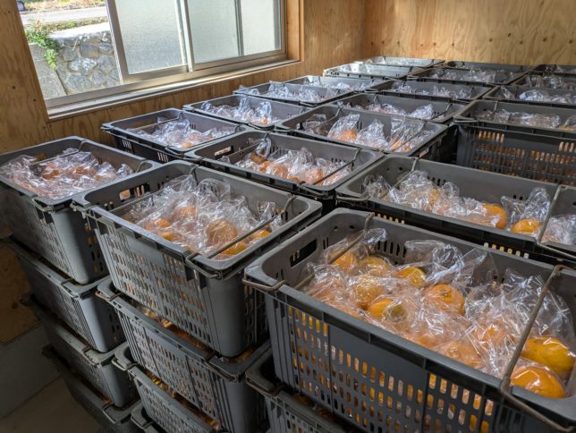 今日は寒い日。朝から奥方と二人でデコポン包の続き。午後3時ごろ終了した。ヤッホー。単純作業を続けるのはつらいが、終わると解放感がある。今年は80杯とちょっと。異常気象の影響か去年の半分くらいかな。でも玉の太りは良くて、精品がほとんどだ。味もいい。