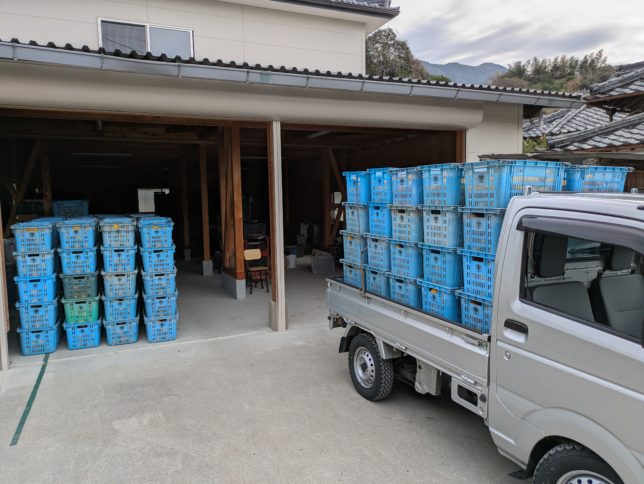 今日から宇和ゴールドが出荷できる。朝から頑張って選果を終えたのを軽トラに積んで共選に出荷。奥方にも手伝ってもらってほぼ300杯出荷。午後までかかった。いい筋トレです。