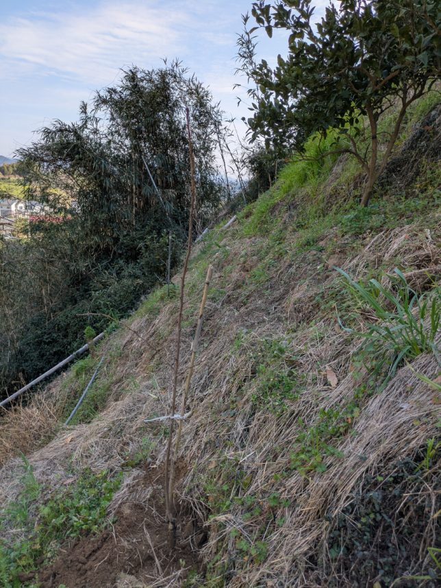 去年はもう少し奥の、ここもミカンを作るのをやめた場所に3本植えた。どれも元気に育っている。