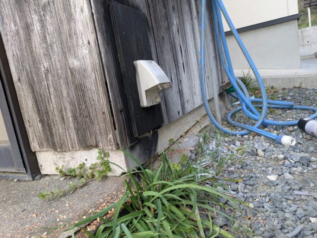 帰ってから、オヤジはDIYで倉庫の外のトイレに野外コンセントを設置した。