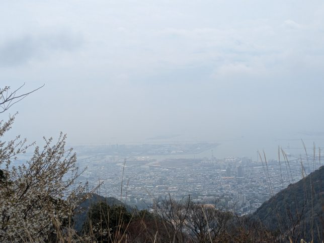 朝起きて、ゆっくり朝食。昨日の食べ過ぎ、飲み過ぎであまり食欲はない。メニューは盛りだくさんだったけど残してしまった。そのあと温泉にもう一度入って次の目的地の六甲山頂上へ。有料道路で山の中を走って1時間ほど。頂上近くにあるガーデンテラスへ。残念ながら視界が悪い。神戸の街のほうを写真を撮ったのがこちら。
