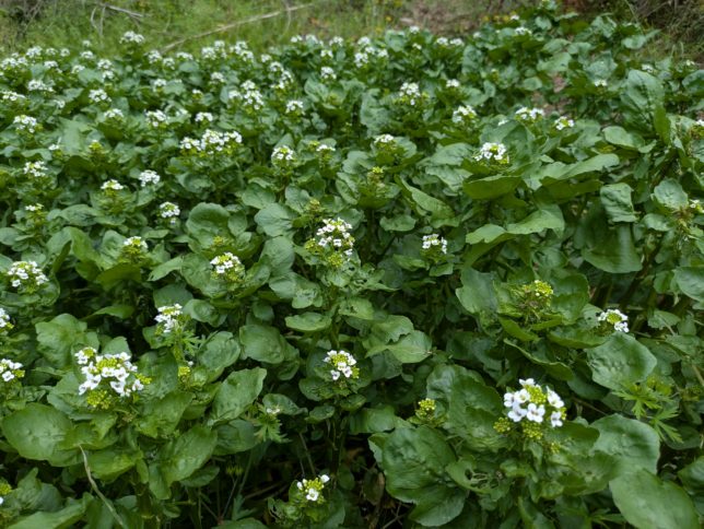 今日の写真は紅まどんな園地の一角のクレソンの花。一斉に小さくて白い花が咲いている。これでクレソンの季節も終わりということだ。