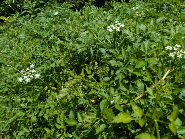 写真のすぐ手前あたりにセリが自生している。だいぶ育っていて花が咲き始めている。花は小さい白い花。なんかクレソンと似ている。