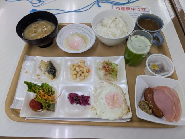 朝は玉川温泉で目がさめた。空調なしでも快適に眠れた。朝飯前にひとふろあびた。夕食に続き、朝食もバイキング。今日も欲張り過ぎた。