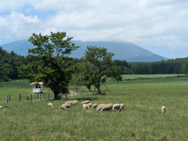 食べたあと農場を一巡り。岩手山は残念だが雲がかかっていた。気温は30℃ぐらいか。少し暑いが、カラッとしていて気持ちがいい。