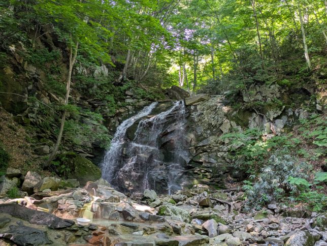 そのあとは近所の網張温泉へ。ここの仙女の湯は40年前に中川氏と入ったことがある。滝がありその下近くに湯舟がある。混浴で先客に老夫婦が。奥さんと湯船の中で少しお話し。東北の混浴文化ならでは。