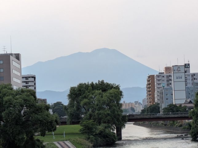 夜、11時ごろ自宅に到着。いい旅でした。最後に盛岡の開運橋から見た北上川と岩手山の夕景。