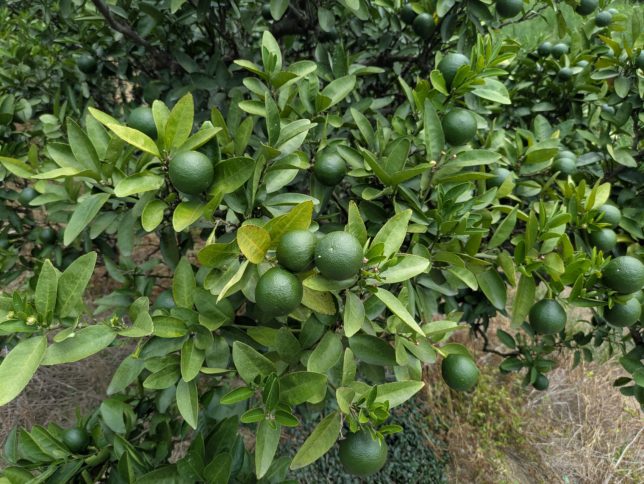 午後はゆっくり昼寝したあと、天気が回復したようなので3時ごろから黒点病防除の続き。和田地区のデコポンをかたづけたあと、最後に寺のウネ園地の早生をやっつけて全園地終了。ヤッホー。