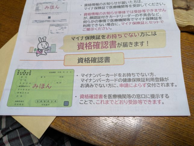 ”マイナンバーカードをお持ちでない方、マイナンバーカードの健康保険証利用登録がお済みでない方に、申請によらず交付されます”と書かれている。オヤジも奥方もマイナンバーカードの健康保険証登録をした覚えはない。