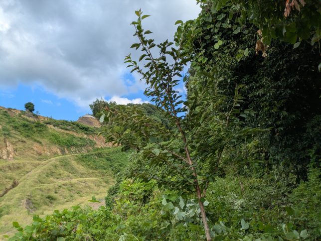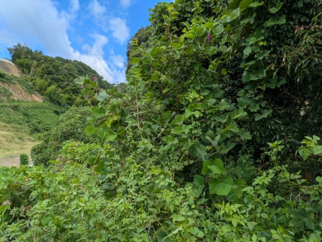 そのあとは、緊急避難所の近くに一昨年植えた桜のケア。葛に巻きつかれた桜がこちら。
