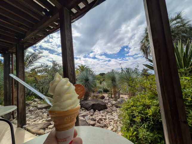 園内は広くて南仏の雰囲気の庭園もある。そこにあるリヴィエラの小屋でソフトクリームを食べた。