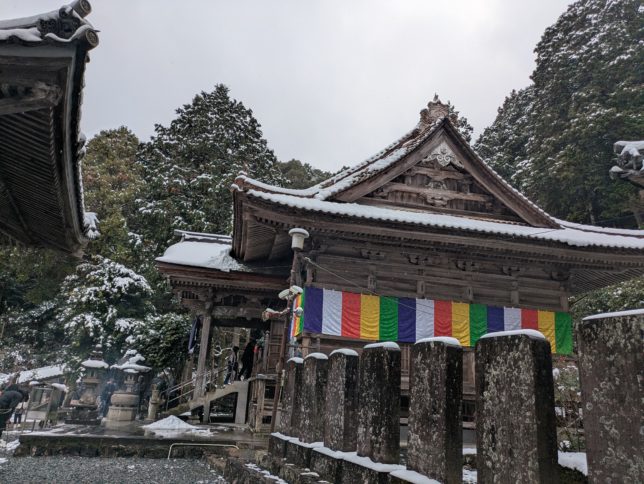 10時すぎに奥方とお出かけ。初詣に宇和の第43番札所明石寺へ。毎年来ている。別に信仰心はあまりないのだが、山寺の静謐な雰囲気が好きで来ている。宇和にはまだ雪が残っていた。我が家とは気温が3℃ぐらいは違う。