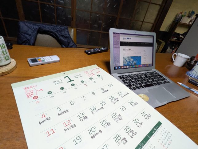 お楽しみはそこそこにして、明日からお仕事。今年の作業計画を立てることにした。余っているカレンダーにその月にやらねばいけない項目と去年どの日に何をやったか記載した。農業はまあ、毎年同じ時期に同じことをやってればまずまず仕事にはなる。オヤジのように、毎年やり方を変えていると痛い目に会うこともある。