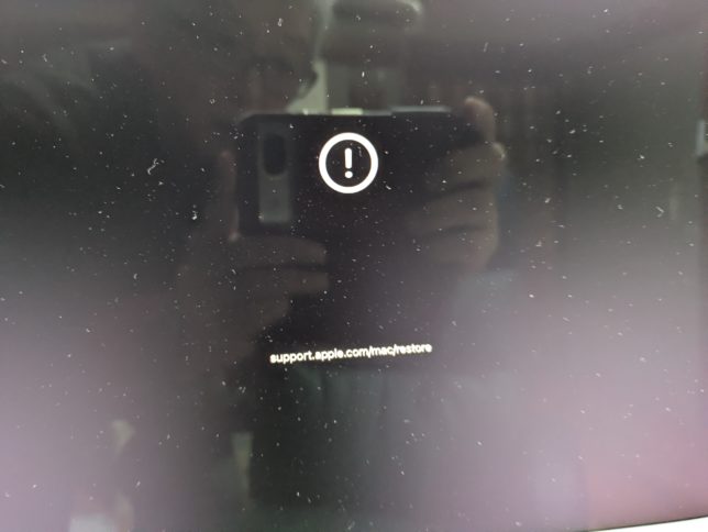 お昼やすみにiMACをさわっているうちになにもしないうちに再起動状態に。実は昨日もこんな症状が出ていた。何回も繰返したのちに結局動かなくなった。ずっと表示されている画面がこちら。