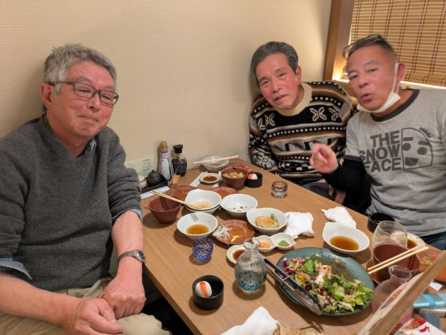 昼ごろオヤジは横浜へ。西口で会社員時代の師匠と弟弟子の三人で昼飲み。時間を忘れて昔の話や政治経済の話など。3軒はしごしてお開き。師匠は82歳だとか。弟弟子も60歳で定年になったらしい。時のたつのは早いが、人間はまったく変わってない。オヤジも弟弟子も師匠をはじめとする先輩猛者がいたから、長くつとめられたんだと思う。いい時代だったんかな。顔出しの許可は得てないが写真を載せておく。いい日でした。