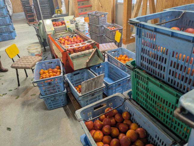 そのあとはモロ(ブラッドオレンジ)の選果。夕方までやって全部で100杯以上の選果終了。